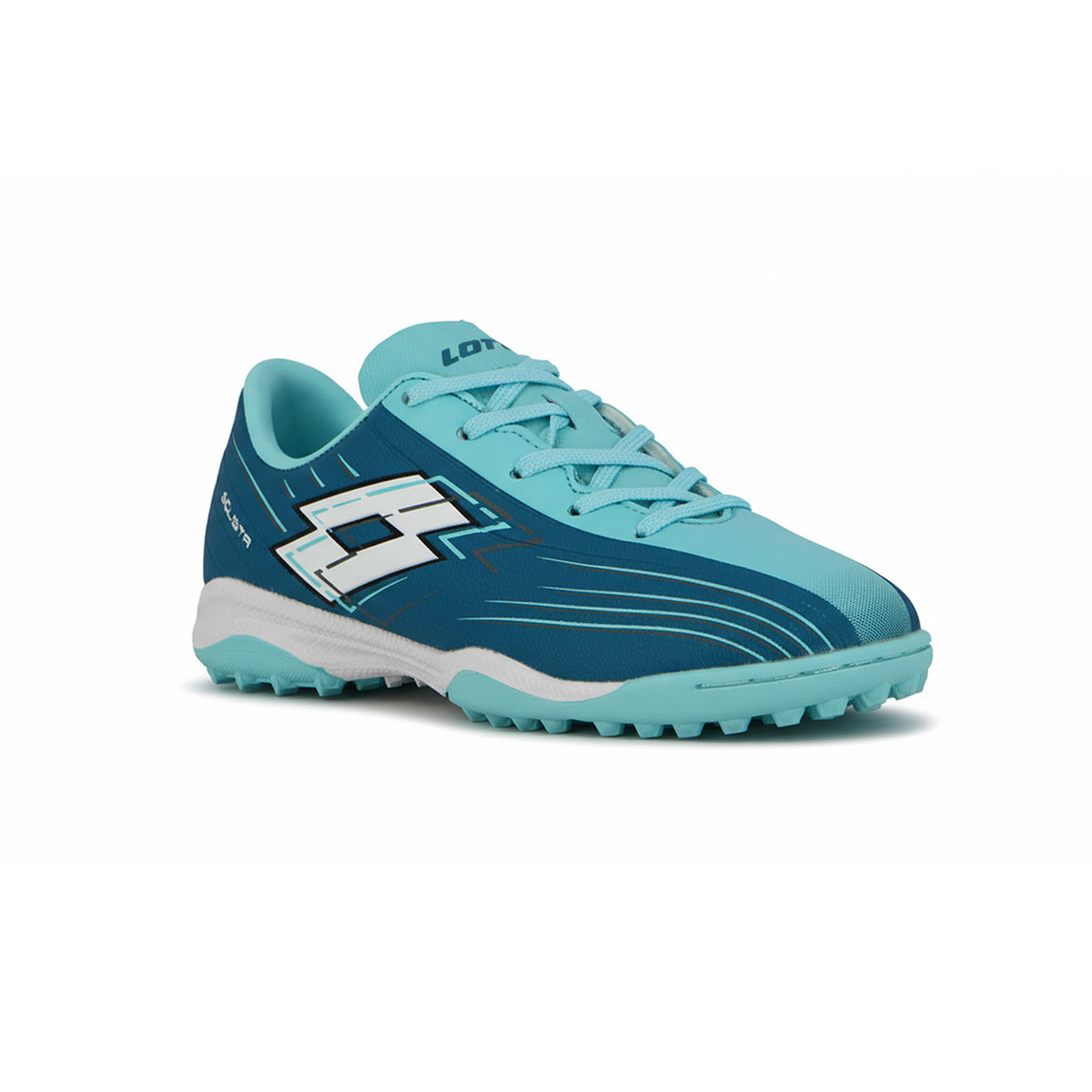 Lotto SOLISTA Futbol 5 TF Niño - Turquesa/Blanco