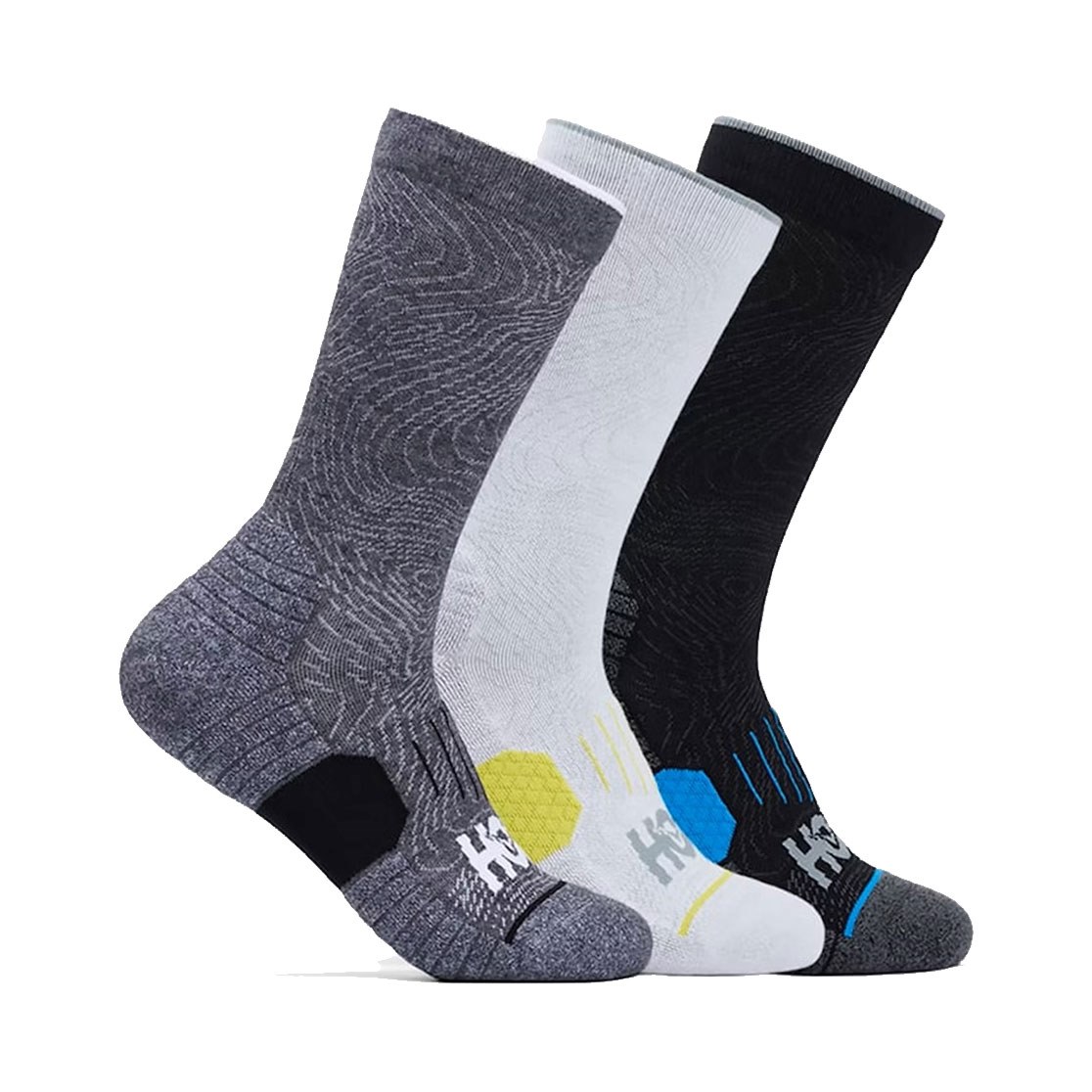 Hoka Medias U CREW RUN SOCK 3-PACK Blanco/Negro/Gris
